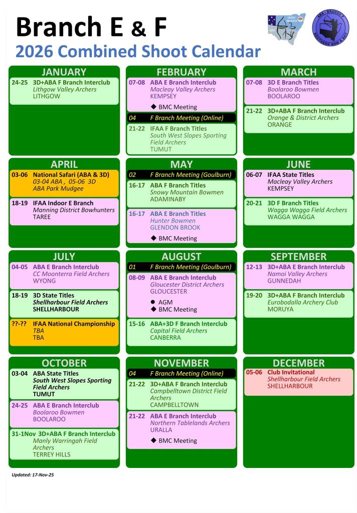Branch Shoots are two day competitions held by a different club each month, registrations are open to all ABA members. Clubs offer camping grounds for visitors and most are catered with lunches, snacks, drinks and dinner on Saturday night available for purchase. Keep an eye on the Southern NSW and ACT Branch ABA Facebook page for registration dates.